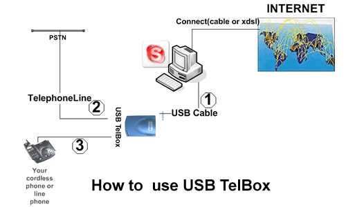 USB-B2K is analog telephone adaptor, one USB interface to PC, 1 FXS for regular phone, 1 FXO for PSTN call relays. All cordless phones and regular phones can be used to make and receive skype call. Phone can be used to make regular call at the same time. Phone rings for all incoming skype and PSTN calls, Skype or PSTN calls selected by phone key